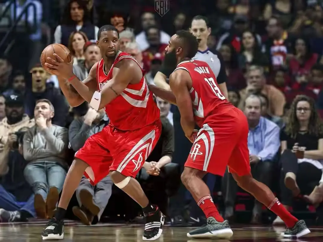火箭的队史最佳阵容是:哈登、麦迪、奥拉朱旺、摩西马龙和姚明。他们这前场确实是很豪华,火箭队史有中锋赢球文化,所以超级中锋多也是情理之中。哈登在火箭时期巅峰赛季场均可以拿下36.1分,是历史前五级别的分卫,如果他有一个总冠军,估计能够杀到前四,历史上攻传一体最好的球员之一。